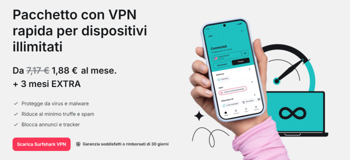 Per beneficiarne basta andare sul sito di Surfshark e scegliere il piano più adatto alle proprie esigenze.