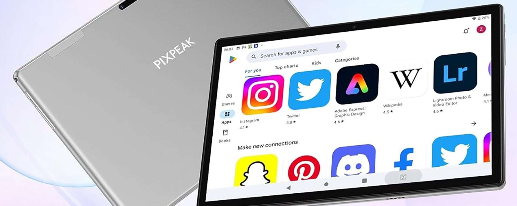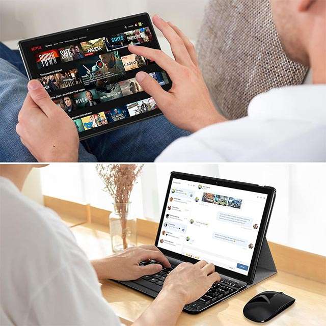 In questo momento, il tablet Android da 10 pollici del marchio PIXPEAK è in sconto a soli 90 euro. Sono inclusi numerosi accessori, utili anche per trasformarlo all’occorrenza in un piccolo notebook per il lavoro, comodo per scrivere testi e modificare documenti: custodia protettiva con tastiera incorporata, mouse, auricolari, caricabatterie, cavo di ricarica e OTG. Non devi far altro che attivare il coupon su Amazon e sarà a casa tua entro domani.
