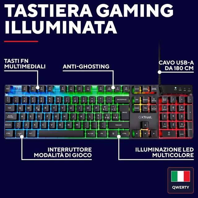 Trust Gaming GXT 835 Azor è la tastiera gaming più venduta su Amazon e oggi la trovi in forte sconto. Non lasciarti sfuggire l’occasione per acquistarla al prezzo stracciato di soli 16,99 euro. Si tratta di un’offerta a tempo, quindi potrebbe scadere o andare sold out da un momento all’altro. Tra i punti di forza sono da segnalare il design e le caratteristiche pensate per supportare il giocatore anche nelle fasi più intense.