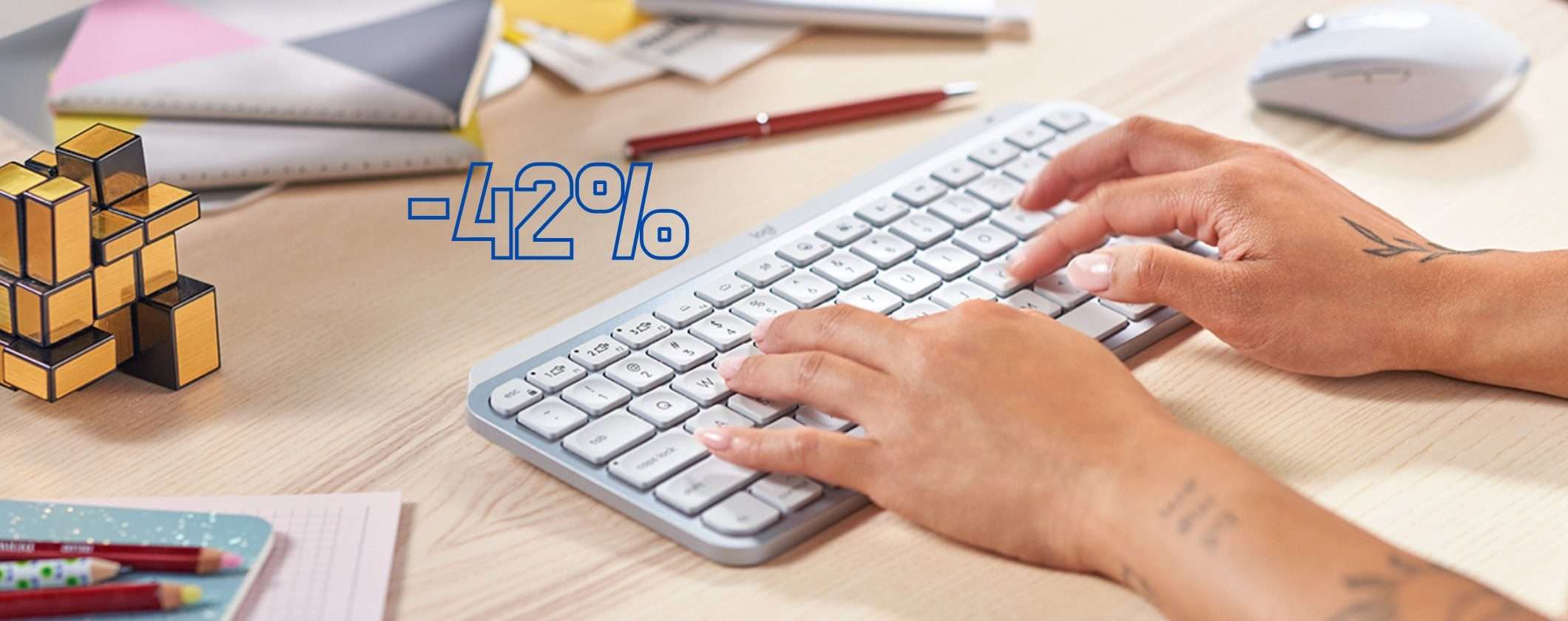 Con una Tastiera Logitech MX Keys Mini migliori la tua produttività di scrittura davanti al computer in un attimo. Le tue dita si abitueranno subito alla sua disposizione rendendoti ancora più veloce e riducendo gli errori di battitura. Acquistala ora al 42% di sconto su Amazon.