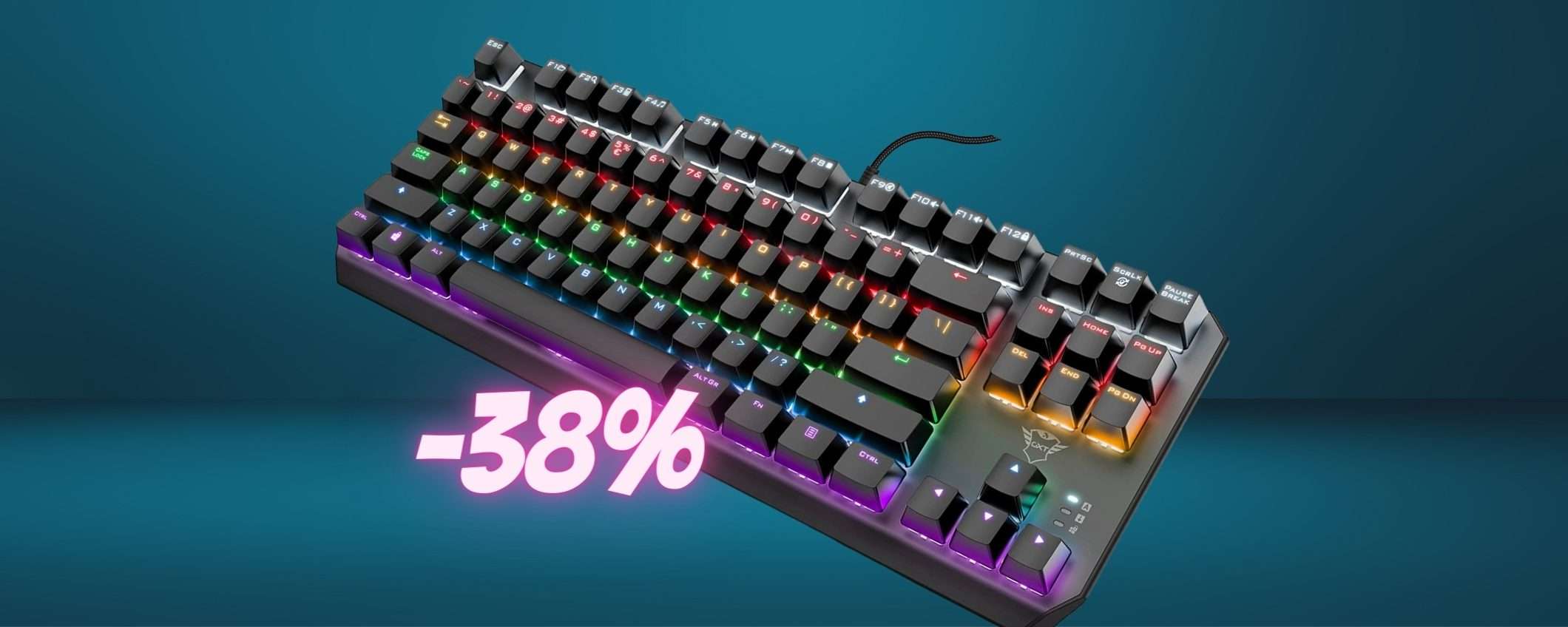 Non lasciarti scappare questa incredibile offertae acquista subito su Amazon la Tastiera Meccanica Gaming RGB di Trust Gaming a soli 30,99€ grazie allo sconto del 38%.