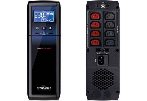 Si tratta del modello Tecnoware UPS EXA PLUS 1000 dotato di un display LCD multifunzione con informazioni sullo stato della linea elettrica e sull’autonomia residua, in grado di alimentare computer, console e altre apparecchiature tramite le otto prese posizionate sul retro per un tempo che arriva a 30 minuti. Sulla parte frontale anche due porte USB per la ricarica rapida di smartphone e tablet.