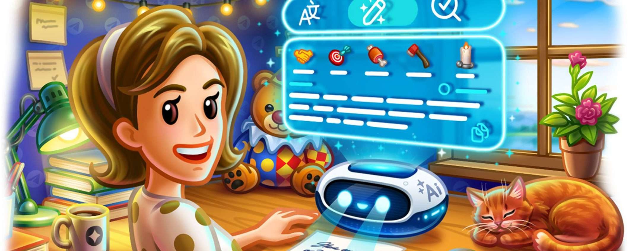 Nella barra dei messaggi è ora presente un editor integrato che sfrutta modelli AI open source per la traduzione del testo in un’altra lingua, la correzione grammaticale e la riscrittura in uno stile differente (formale, corto, tribale, zen, biblico e aziendale). Dopo aver digitato almeno tre righe di testo viene mostrata l’icona Ai sopra il pulsante Invia.