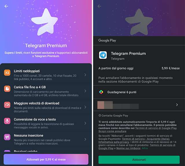 Ora c’è la conferma sul prezzo: in Italia, l’abbonamento mensile a Telegram Premium costa 5,99 euro. Lo si apprende dal messaggio mostrato aprendo l’app (e visibile nello screenshot qui sotto). Un esborso economico di certo non contenuto. Il successo della proposta è tutto da verificare. Per fare un confronto, negli Stati Uniti la sottoscrizione è proposta a 4,99 euro.