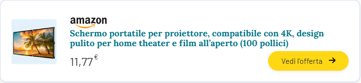 Perché limitarti alla diagonale di un televisore, quando con un telo per proiettore puoi portare il livello di coinvolgimento del cinema a casa tua? Oggi ne trovi uno in offerta su Amazon Haul a prezzo davvero stracciato, con la possibilità di scegliere tra diversi formati: 30 pollici, 60 pollici, 84 pollici e 100 pollici. È tra i bestseller della piattaforma, sta andando a ruba e non ne rimangono molti a magazzino.
