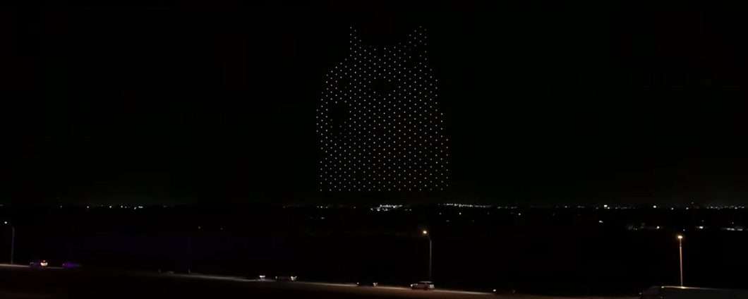 Il tutto è avvenuto tramite l’utilizzo di droni illuminati che hanno disegnato nel cielo notturno una serie di profili dal grandissimo effetto scenico. Ad un certo punto, tra il “wow” dei presenti, compare improvvisamente la mascotte che nessuno immaginava in quel contesto fortemente incentrato sul mondo Tesla: