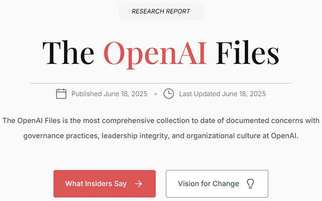 Il sito The OpenAI Files (openaifiles.org) è online solo da un paio di giorni, ma sta già stimolando un’accesa discussione. L’autodefinizione che si attribuisce è quella di raccolta più completa ad oggi di problematiche pubblicamente documentate relative alle pratiche di governance, all’integrità della leadership e alla cultura organizzativa di OpenAI