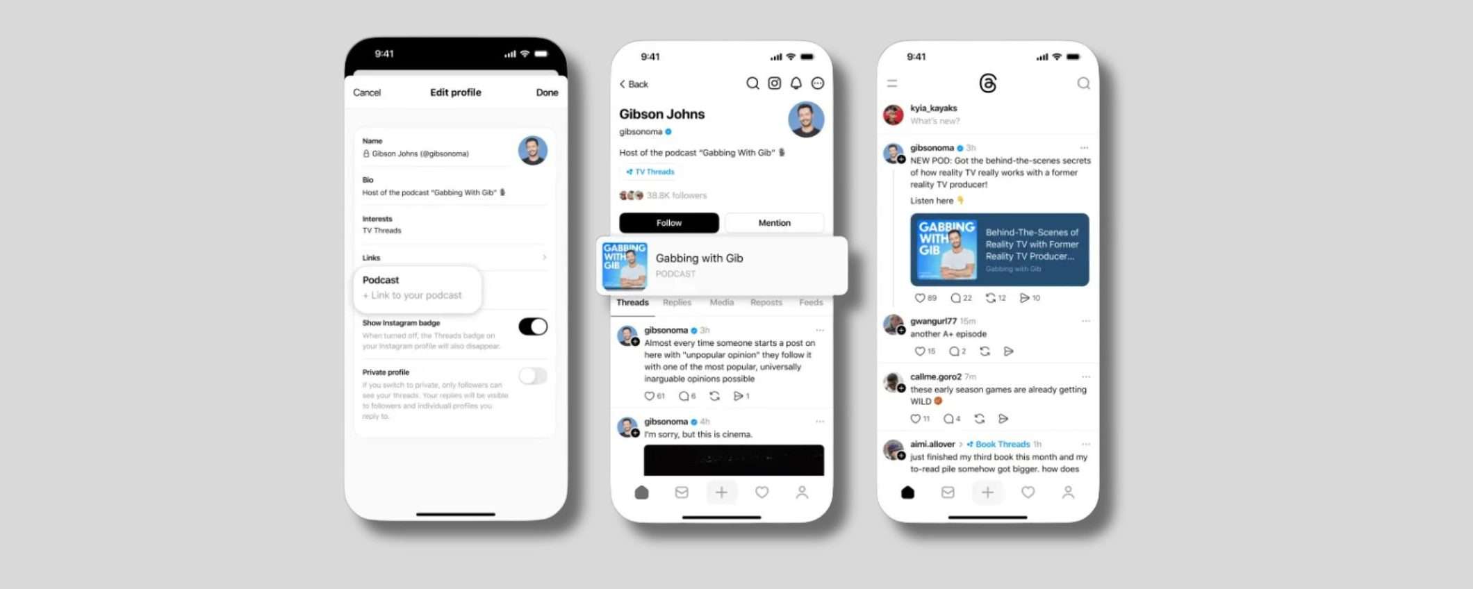 Inizialmente Threads lancerà un paio di novità, come i link dei podcast nel feed. Avranno sfondi colorati e miniature delle immagini, così sono più facili da individuare mentre si scorre il feed. I link normali si perdono facilmente nel flusso infinito di post. Un link con uno sfondo colorato e una miniatura accattivante cattura subito l’occhio, si distingue, invita a cliccare.