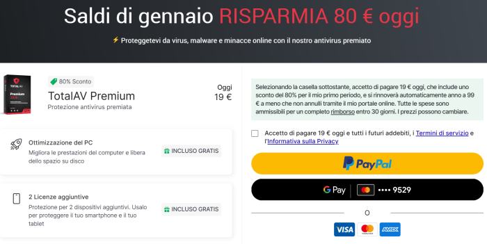 Per approfittare dell’offerta in corso è sufficiente andare sul sito di TotalAV.