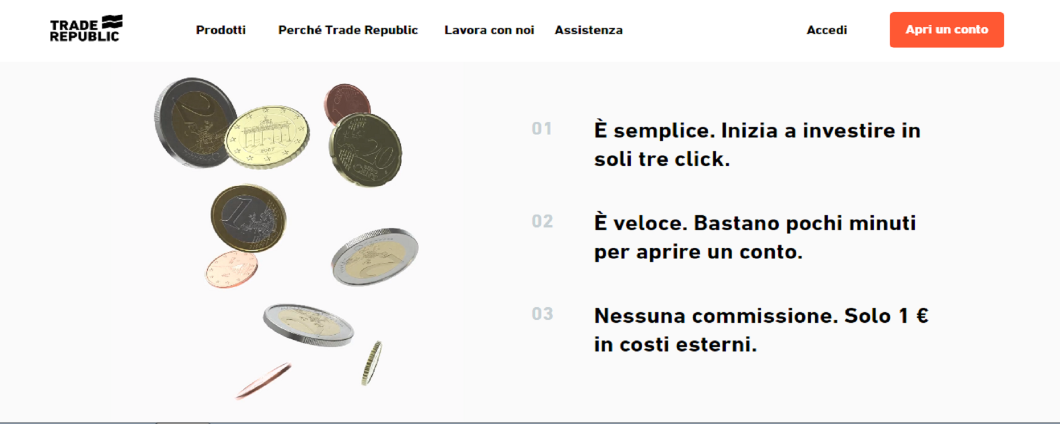 Trade Republic è finalmente disponibile in Italia. A partire da oggi, infatti, potrai cominciare a investire in modo semplice, sicuro e senza commissioni.