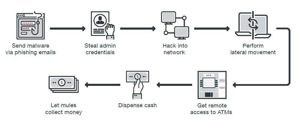 Oggi i cyber-criminali bancari provano a guadagnarsi un accesso alle LAN degli istituti finanziari attraverso e-mail di phishing e il furto delle credenziali degli impiegati , sfruttando poi la incorretta segmentazione dei network interni (quello per i dipendenti e quello per le operazioni degli ATM) per giungere all’obiettivo di rubare denaro alla banca e ai clienti.