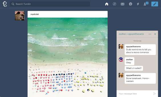 Sfruttare l’attrattiva esercitata sugli utenti dalla messaggistica istantanea è l’obiettivo di tutte le piattaforme social che progressivamente si sono dotate di strumenti collaterali per supportare le conversazioni: Tumblr, che sta implementando questa funzione a modo proprio, intende farlo valorizzando le proprie peculiarità.