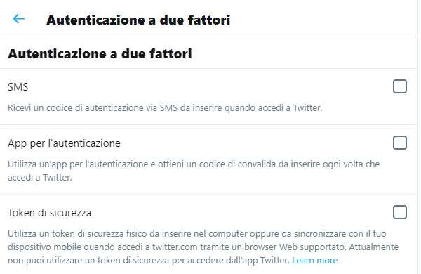 La feature è in fase di rollout. Sulla versione desktop di Twitter la si può trovare facendo clock sul pulsante “Altro” nella colonna sinistra dell’interfaccia, accedendo alla voce “Impostazioni e privacy”, selezionando poi “Account”, “Sicurezza” e infine “Autenticazione a due fattori”.