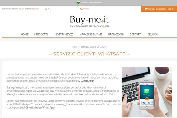 Tra le aziende che usano WhatsApp per assistere il cliente c’è l’e-commerce Buy-Me.it (di proprietà del gruppo Mail Boxes Etc). Questi, assieme alla conferma dell’ordine ricevono un numero di cellulare. È sufficiente inviare un messaggio, una volta aggiunto in rubrica, per ricevere immediata risposta attraverso l’app