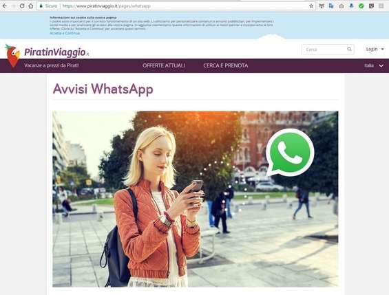 Piratinviaggio.it, noto portale che segnala offerte di viaggio, utilizza WhatsApp per tenere informati i propri utenti sulle offerte più vantaggiose. È evidente il forte “ingaggio” e aspettativa che questo strumento riesce ad offrire