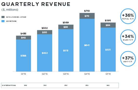 Nonostante le iniziative, nonostante la riapertura agli sviluppatori e la razionalizzazione delle spese , Twitter non cresce quanto sperato : rispetto al trimestre precedente crescono poco gli utenti, da 305 a 310 milioni gli utenti attivi al mese (fatta eccezione per coloro che impiegano solo gli SMS), e cala il fatturato rispetto ai 710 milioni di dollari dello scorso trimestre, raggiungendo i 595 milioni di dollari, vale a dire la peggiore delle aspettative prospettate dall’azienda, ben inferiore ai 678 milioni attesi dagli analisti. 531 milioni (+37 per cento rispetto allo scorso anno) provengono dall’advertising, con l’88 per cento generato su canale mobile. Unico aspetto incoraggiante dei risultati di Twitter, il contenimento delle perdite , 79,7 milioni di dollari rispetto ai 90 milioni di perdite del trimestre scorso e ai 162 milioni fatti segnare un anno fa.