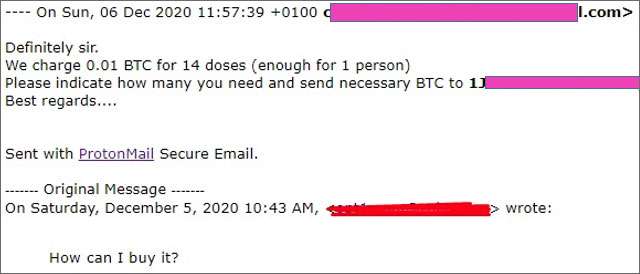 Inutile ribadire che la procedura per la vaccinazione passa e passerà esclusivamente dalle autorità pubbliche addette alla sanità e non di certo dal Dark Web. È bene diffidare da qualsiasi inserzione di questo tipo, qualunque sia la sua provenienza, così come di quelle che sponsorizzano l’idrossiclorochina o altri rimedi per COVID-19.