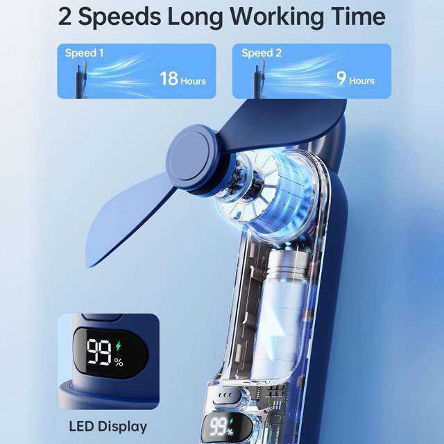 Nonostante le sue dimensioni ridotte, integra un motore ad alta efficienza che genera un flusso d’aria continuo e silenzioso, mentre le pale ultra-morbide si fermano all’istante al contatto con la pelle, garantendo un utilizzo sicuro anche per i più piccoli. È l’accessorio ideale da tenere sempre a portata di mano, per trovare sollievo immediato. Uno dei punti di forza è la batteria da 2.000 mAh che assicura fino a 18 ore di autonomia alla velocità minima e fino a 9 ore a quella massima. Inoltre, come anticipato, grazie alla funzione di powerbank d’emergenza può alimentare smartphone e altri dispositivi tramite USB, mentre il pratico display digitale mostra lo stato di carica in tempo reale. Scopri di più nella descrizione completa.