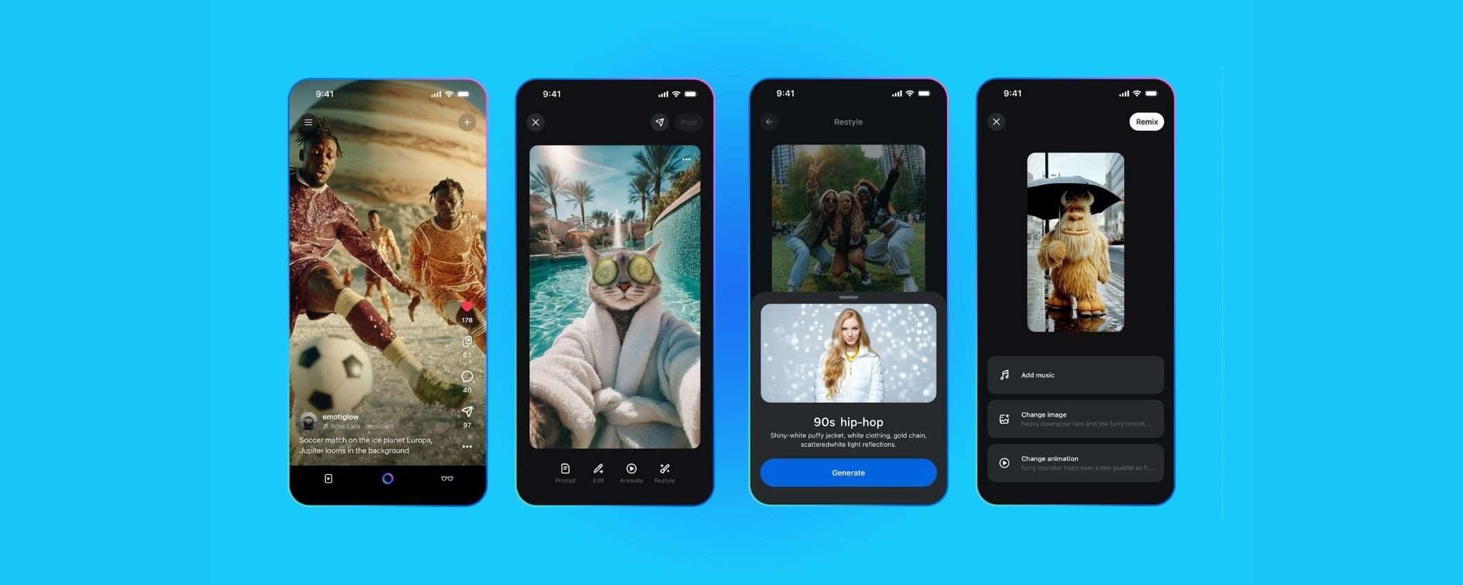 Vibes permette di generare video da zero usando prompt testuali, oppure di fare remix di video visti nel feed. È possibile aggiungere nuovi elementi visivi, inserire musica, regolare gli stili, e poi pubblicare direttamente nel feed di Vibes, inviare tramite messaggio diretto agli amici, o postare contemporaneamente come Storie o Reel su Instagram e Facebook.