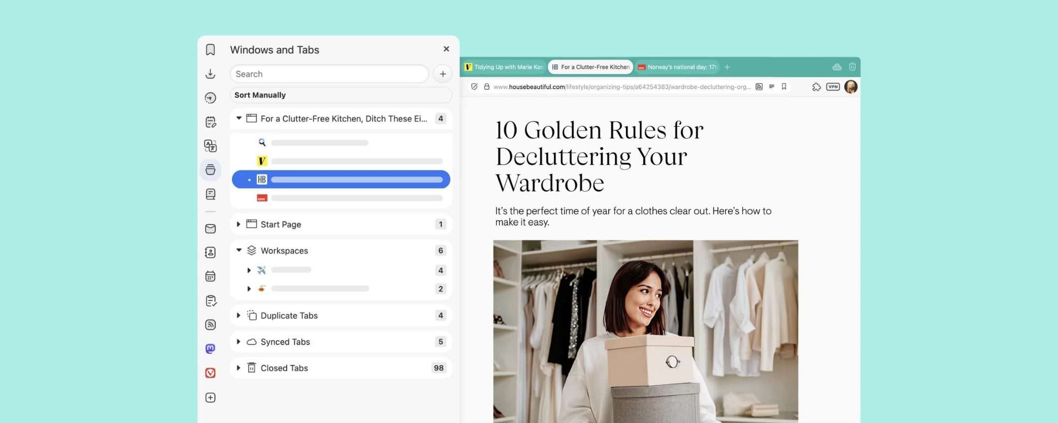Ora Vivaldi si apre più rapidamente, grazie a un selettore di profili semplificato. Passare da un profilo all’altro così è più immediato e meno macchinoso. Anche i pannelli di finestre e cronologia sono stati riorganizzati per essere più chiari, leggeri e facili da usare, anche per chi non è esperto.