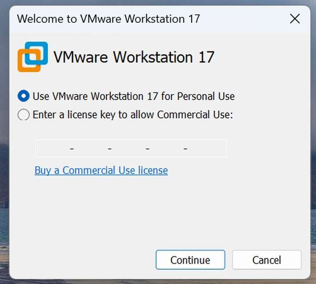 Dopo aver effettuato la registrazione al nuovo portale di Broadcom e scaricato il software è sufficiente avviare la procedura di installazione e scegliere l’opzione “Usa Workstation Pro 17 per uso personale“. Per l’uso commerciale serve invece una chiave di licenza. La stessa novità riguarda VMware Fusion Pro, la soluzione di virtualizzazione per macOS.