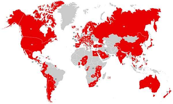 Sono in totale 90 i paesi del mondo nei quali è garantito il pieno funzionamento del dispositivo: l’elenco completo è disponibile sul sito ufficiale (qui sotto la mappa).
