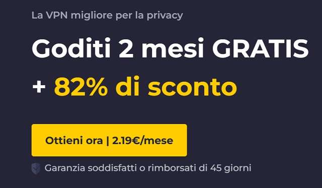 Il prezzo più basso per l’abbonamento in promozione è 1,59€ al mese. Su tutti i piani è possibile beneficiare del rimborso garantito entro 30 giorni dalla sottoscrizione, così da poter provare la VPN e la suite di sicurezza senza rischi.