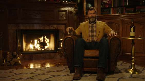 In Nick Offerman’s Yule Log c’è solo Nick Offerman seduto su una poltrona davanti ad un camino in cui un ceppo brucia, che ogni tanto dà un sorso di whisky. Basta. La prima tentazione è capire se il video sia frutto di un loop o se ci sia un trucco. Non c’è. Effettivamente è Nick Offerman che è rimasto fermo su una poltrona per 45 minuti, sorseggiando di quando in quando un po’ di whisky.