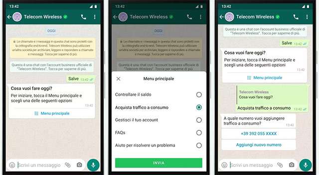 I pulsanti di risposta consentiranno di selezionare con un solo tocco uno dei tre messaggi preimpostati dall’azienda tramite l’account API di WhatsApp Business.
