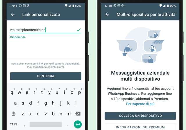 L’annuncio, come sempre, è giunto attraverso un post condiviso sulle pagine del blog ufficiale. La più importante caratteristica inclusa nel pacchetto è quella che interessa la messaggistica aziendale multi-dispositivo. Mettendo mano al portafogli, il numero dei device in grado di gestire un unico account in contemporanea aumenterà da quattro a dieci. Il funzionamento è ben spiegato dalla descrizione fornita.