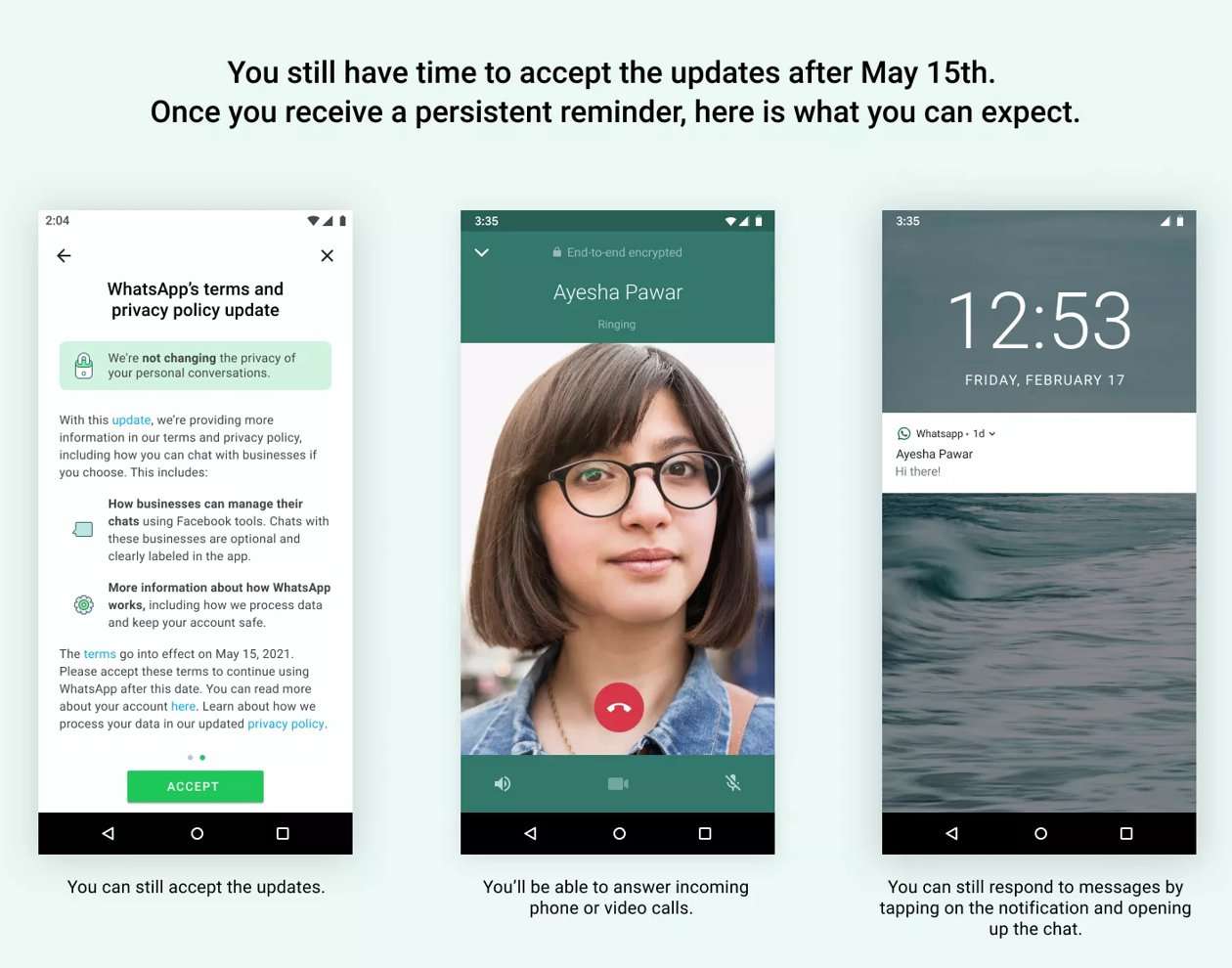Nessuno sarà escluso dall’app. Anche chi non accetta i nuovi termini d’uso, quindi, potrà continuare ad utilizzare WhatsApp senza che venga accompagnato forzatamente alla porta. Tuttavia la sua esperienza sarà profondamente differente e tale da imporre di fatto l’accettazione dei termini.