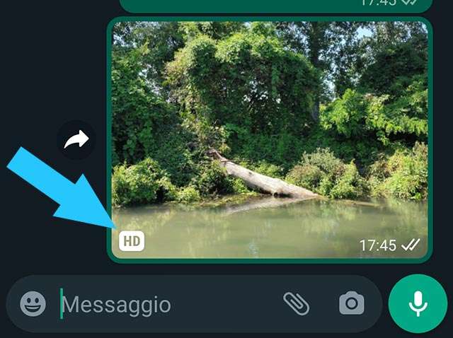 All’interno della chat, l’icona HD compare sopra l’anteprima dell’immagine. L’invio è come sempre protetto dalla crittografia end-to-end.