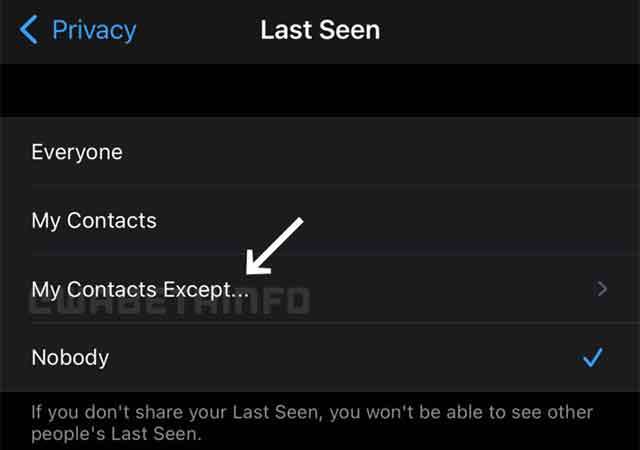 Questo permetterà ad esempio di nascondere l’ultimo accesso a contatti specifici (ma anche l’immagine del profilo e le altre info), senza per forza di cose escludere tutti selezionando l’opzione Nessuno. Sarà utile per chi non vorrà far sapere ad amici, partner o colleghi quando è stato trascorso del tempo in compagnia di chat, chiamate o videochiamate. Alleghiamo lo screenshot condiviso dalla redazione di WABetaInfo per maggiore chiarezza.