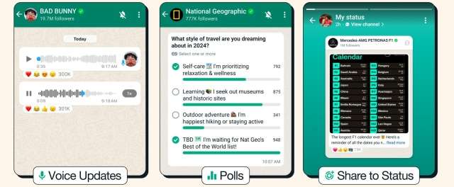 Dopo alcune settimane di test nelle versioni beta di WhatsApp per Android e iOS, gli utenti possono utilizzare quattro novità per i Canali anche nelle versioni stabili delle app. Le nuove funzionalità sono: sondaggi, messaggi vocali, condivisione nello Stato e aggiunta di amministratori.