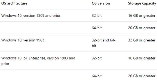 A renderlo noto Microsoft, che nei giorni scorsi ha pubblicato sulle pagine del supporto ufficiale la tabella allegata di seguito. Con la 1809, la release distribuita nell’autunno scorso, lo storage richiesto era pari a 16 GB per l’edizione 32-bit della piattaforma e 20 GB per quella da 64-bit. Ora il gruppo di Redmond non fa più alcuna differenza e in entrambi i casi la soglia minima è fissata a 32 GB. Sebbene questo non dovrebbe costituire un problema per coloro in possesso di un PC relativamente nuovo, chi ha a che fare con una macchina con ormai qualche anno di attività alle spalle potrebbe dover fare i conti con qualche grattacapo.