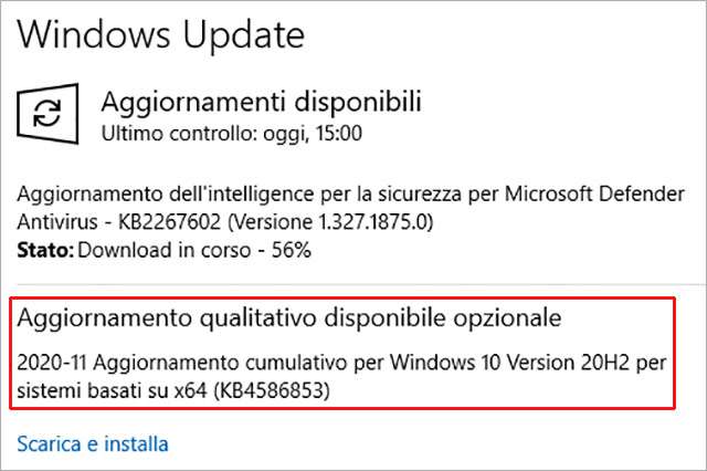 Porta la piattaforma alla build Build 19042.662. Il processo di download e installazione può essere effettuato direttamente da Windows Update come mostra lo screenshot qui sotto o in alternativa in modo manuale scaricando il pacchetto dal Microsoft Update Catalog. Al termine si rende necessario eseguire un riavvio.