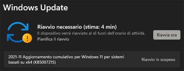 KB5007215 è il secondo aggiornamento cumulativo per Windows 11 (il terzo considerando quello “out-of-band” del 5 novembre). L’installazione dell’update porta il numero di build a 22000.318. Gli utenti possono scaricarlo da Windows Update o manualmente dal Windows Update Catalog. L’aggiornamento include ovviamente i fix della patch KB5008295 e risolve anche un problema rilevato in alcune app che usano GDI+ (gli elementi dell’interfaccia non sono visualizzati correttamente). Non ancora risolto invece il bug relativo alle stampanti di rete.