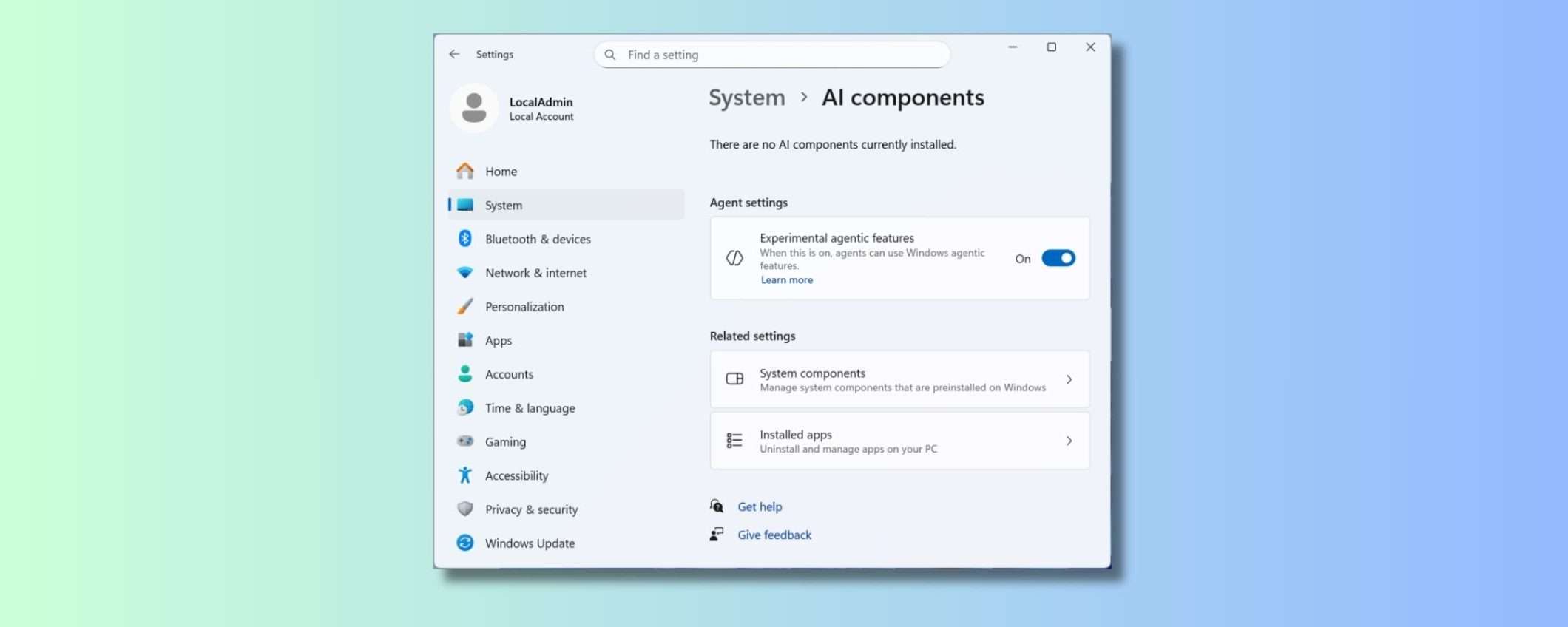 Gli agenti AI sono disabilitati per impostazione predefinita, e si devono attivare manualmente andando in Impostazioni > Sistema > Componenti AI e attivando l’interruttore “Funzionalità agentiche sperimentali”. Microsoft le definisce sperimentali, il che significa che potrebbero funzionare benissimo o potrebbero causare problemi strani che nessuno ha previsto. È il bello degli esperimenti, non si sa mai cosa succederà.