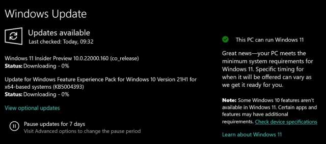In realtà sarà sufficiente verificare la disponibilità dell’aggiornamento tramite Windows Update. Se i requisiti sono soddisfatti verrà mostrato un messaggio sul lato destro: