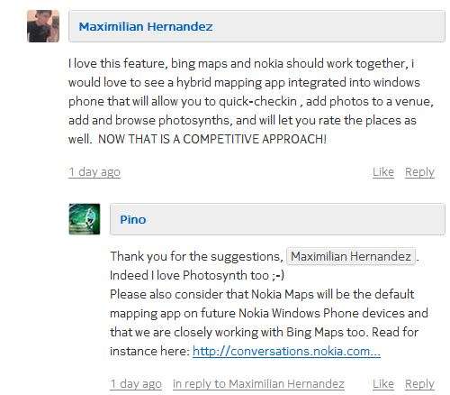 Nokia Maps potrebbe diventare applicazione di default per le mappe sui dispositivi basati su sistema operativo Windows Phone (non necessariamente con marchio Nokia), sostituendo così Bing Maps. Una notizia che, se confermata, non sarebbe sorprendente, dato che Nokia sta già lavorando da tempo a stretto contatto con il team di Bing, fornendo i propri servizi sul traffico e sulla geolocalizzazione nelle mappe del motore di ricerca Microsoft. Tale scelta è simile a quella fatta nei giorni scorsi da Apple , che ha deciso di rinunciare all’apporto di Google Maps per sviluppare un proprio analogo servizio.