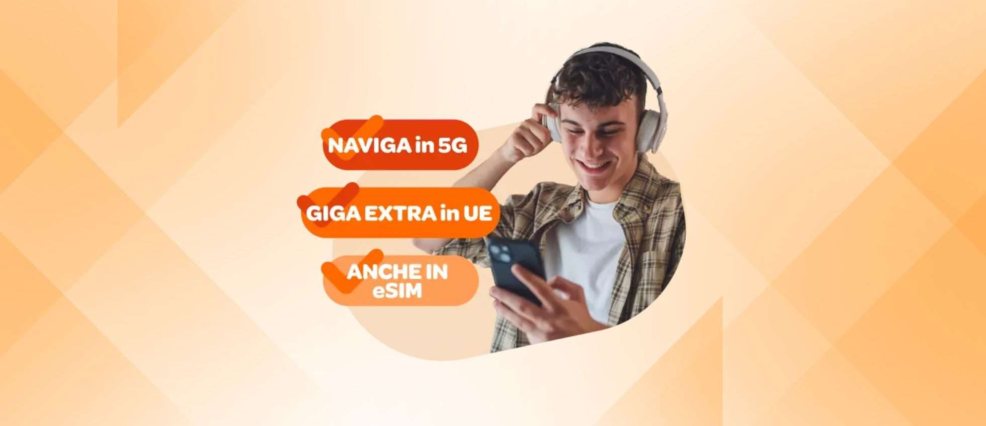 Il pacchetto prevede 200 giga alla massima velocità disponibile, fino a 2 Gbps a seconda della zona in cui ti trovi: in ogni caso, avrai una copertura garantita per il 99,7% della popolazione in 4G e addirittura del 97% in 5G. A questo devi aggiungere minuti illimitati e 50 SMS, oltre a 7,6 giga extra da utilizzare in roaming nei paesi dell’Unione Europea.