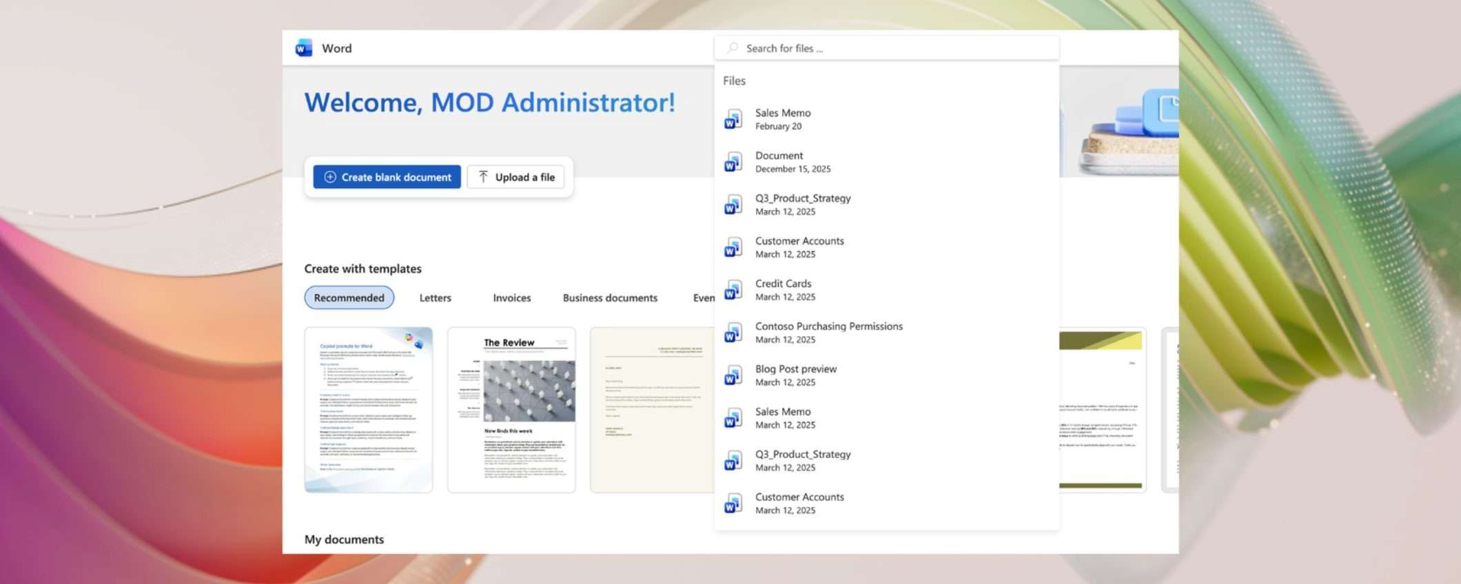 Le pagine delle versioni online di Word, Excel e PowerPoint, quelle che si vedono quando si accede per scegliere cosa aprire, mostravano al centro alcuni modelli di documento già pronti e, più in basso, i file recenti. La parte alta della pagina, però, era quasi vuota. Ora invece ospita una barra di ricerca funzionante, basta digitare il nome di un file e i risultati compaiono in tempo reale. È possibile cliccare su qualsiasi risultato per aprirlo direttamente.