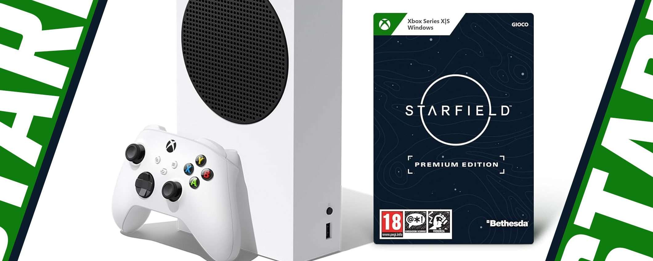 In questo momento è possibile acquistare Xbox Series S e Starfield Digital Premium Edition al prezzo finale di 386 euro invece di 409 euro come da listino, con un risparmio di 23 euro. Non c’è bisogno di attivare coupon né di inserire codici: è tutto pronto per metterlo nel carrello. È in offerta anche il bundle con la versione Digital Standard Edition del gioco, al prezzo di 356 euro.