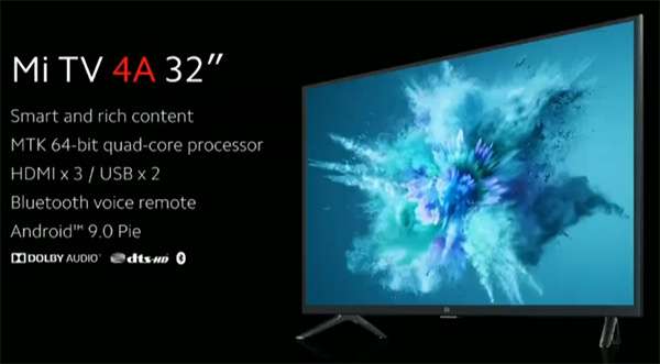 Non è tutto: come visibile qui sotto, Xiaomi ha annunciato anche l’arrivo in Europa della più economica Mi TV 4A da 32 pollici a 179 euro. Sono presenti un chipset MediaTek con processore quad core, tre slot HDMI, due porte USB, telecomando con Bluetooth e sistema operativo Android 9.0 Pie.