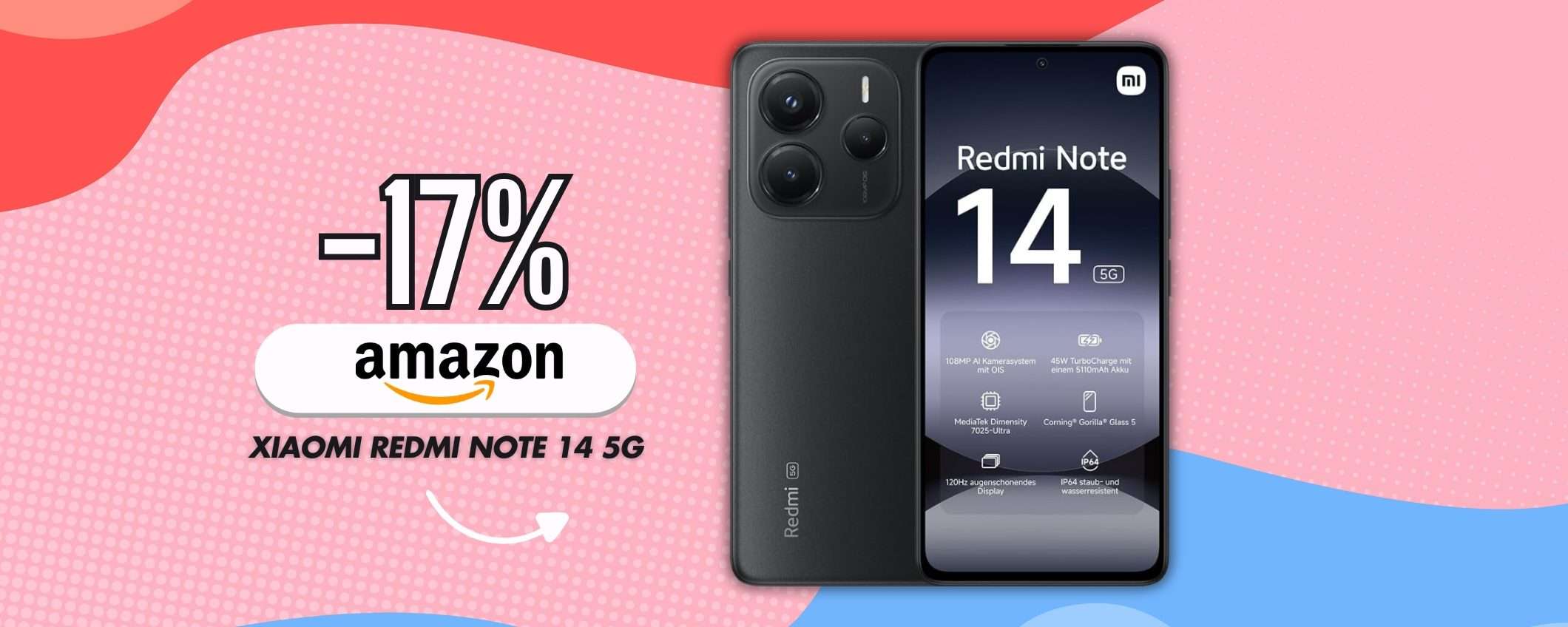 A soli 249,99€ su Amazon, il magico Xiaomi Redmi Note 14 5G è quello giusto da acquistare. Se sei interessato collegati in pagina e approfitta dello sconto del 17%.