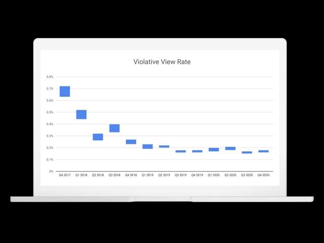 La metrica VVR viene utilizzata dal 2017, ma solo ora verrà mostrata nel report trimestrale. Attualmente la percentuale di visualizzazioni provenienti da video non consentiti è 0,16-0,18%, ovvero 16-18 su 10.000. Rispetto al 2017 il miglioramento è circa del 70%, per cui la rimozione automatica funziona perfettamente.
