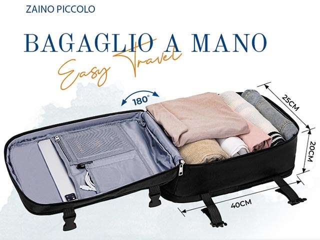 Le dimensioni pari a 40x20x25 centimetri di questo zaino lo rendono compatibile con le misure stabilite dalle compagnie aeree come Ryanair per il bagaglio a mano. Approfitta dell’offerta a tempo disponibile in questo momento su Amazon e acquistalo al prezzo finale di soli 27 euro.